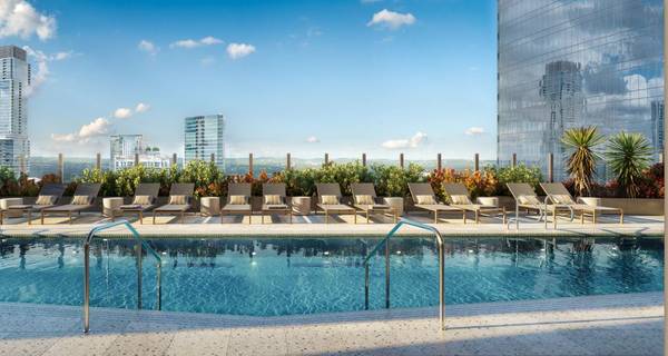 Sky-high 20th-floor pool deck overlooking Republic Square Park