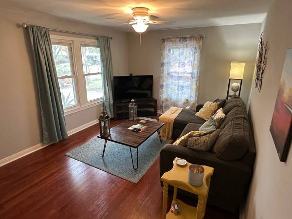 Beautifully updated central Austin 1950s bungalow located in the highly sought after and quaint Crestview neighborhood, nestled between Lamar Boulevard and Burnet Road. 10 minutes from shopping at The Domain and/Q2 Stadium. 10 minutes from UT Campus. Less than 15 minutes to downtown Austin. Numerous award-winning restaurants and bars within walking distance. The home is just down the block from Brentwood Park - a great area for dogs to play, a huge play scape for kids, plus a 1/2 mile walking trail, tennis/pickleball courts, basketball court, volleyball court, baseball field and community pool! The home is less than a mile from the CapMetro Rail Crestview Station and a few blocks from numerous major bus routes. ALL BILLS INCLUDED (Google Fiber, water, electricity, gas, trash & recycling). No smoking. One parking space available in the driveway and free street parking. Looking for a minimum of 1-3 month lease but can be flexible for the right tenants. The house is to be rented as FULLY FURNISHED.