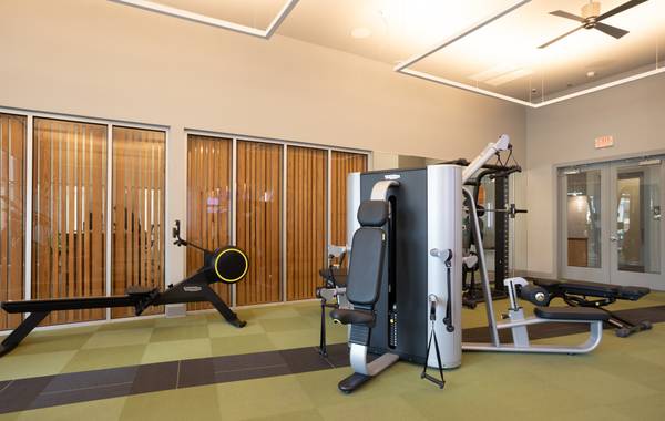 A 24/7 high-tech fitness center equipped with a spin room and yoga/kickboxing studio.
