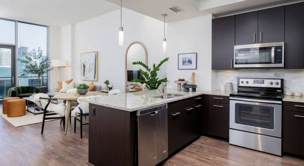 When you’re ready to call it a day, your stylish home will comfort you and your furry friends. We offer custom finishes such as premium slab granite and quartz countertops, engineered hardwood floors and floor-to-ceiling windows to give our units a lavish look, with deep walk-in closets, spa-inspired bathrooms, and stunning terraces which offer a sophisticated living experience.