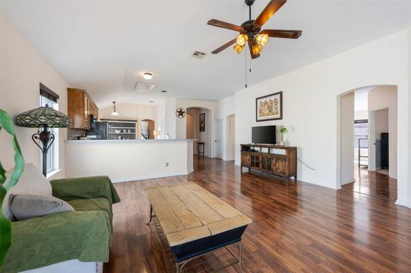 This single-story home in Buda offers an open floor plan that includes two living areas that provide flexibility for entertaining, working from home, or creating a dedicated hobby space.