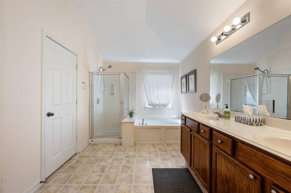 The primary suite features a large walk-in closet and large ensuite bath with separate tub and shower. This home also has fenced backyard with a covered patio and a two-car garage.