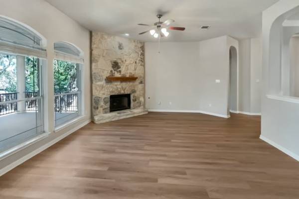 Step inside to discover a home where luxury meets comfort. The interior boasts a neutral color paint scheme, fresh interior paint, and new flooring throughout, creating a warm and inviting atmosphere. The living room features a cozy fireplace, perfect for those chilly evenings. The kitchen is a chef's delight with an accent backsplash and all stainless steel appliances. The primary bathroom is a spa-like retreat with a jacuzzi tub and double sinks.