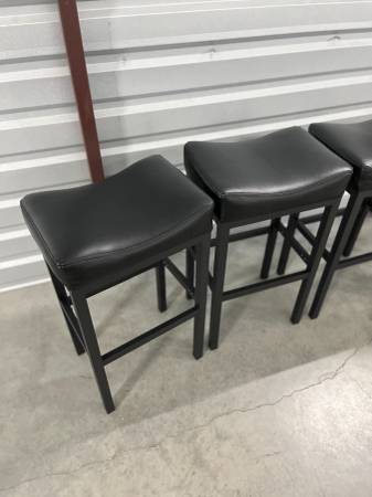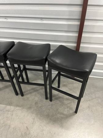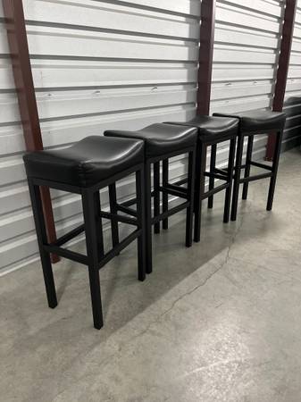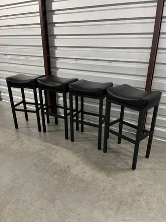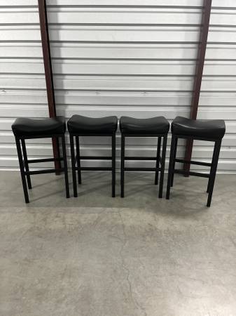 Set of 4 leather bar stools in great condition. Come from a pet-free and smoke-free home. Available for pick up in South East Austin. Dimensions: 18”W x 13”H x 30”H