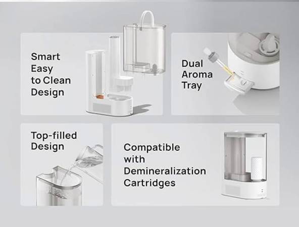 • Compatible with Demineralization Cartridges for cleaner mist.