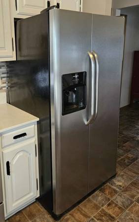 Works great with no issues; we’re just wanting something different. It came with the house we recently bought, and we need the space back. It’s about 7 years old. The ice maker and water dispenser work perfectly, but it’s not currently hooked up to a water line. There is a crack at the bottom of the freezer section (see pic), but it does not affect operation. Located in the 78750 area. Local delivery available for an extra $20. Cash or Zelle accepted.