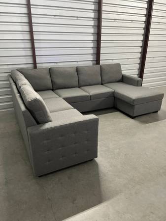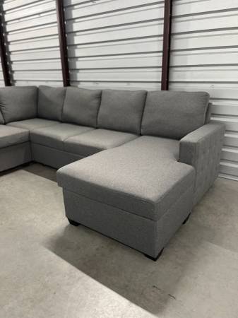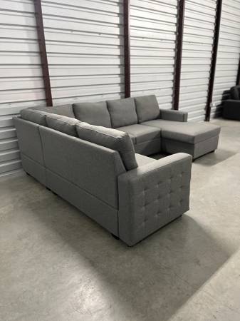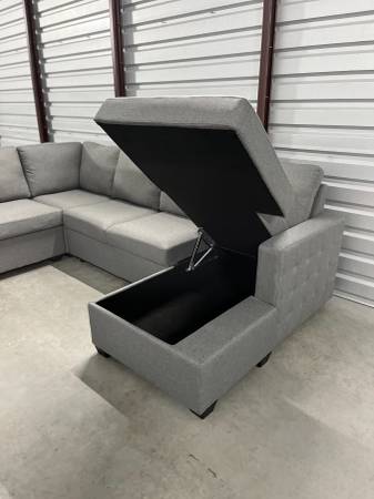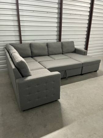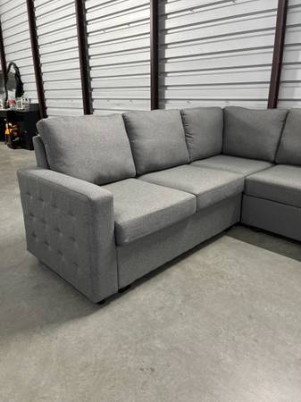 Gray sofa with storage and pull-out bed in excellent condition. Comes from a pet-free and smoke-free home. Very comfy and functional sofa. Delivery available for a fee. Dimensions: Sectional: 110”W...