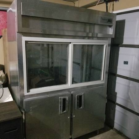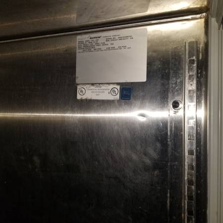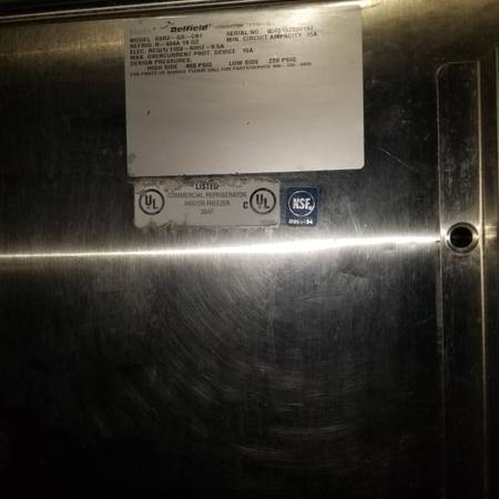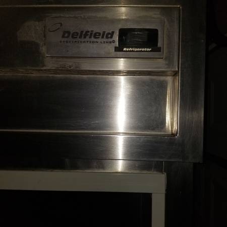 Delfield Commercial refrigerator/freezer. Works great!; rolls smoothly, clean, keeps cold, has 2 shelves and has brackets for several more.