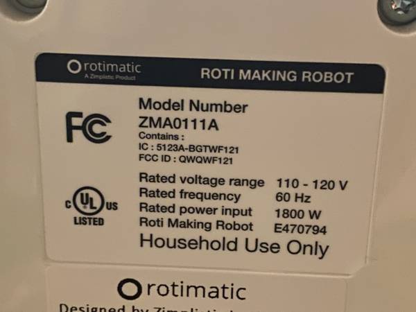 Rotimatic robotic Roti maker machine model ZMA0111A.