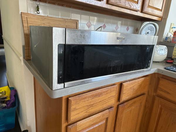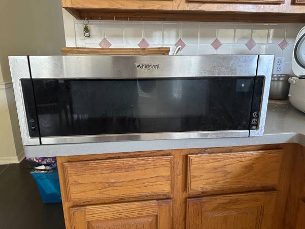Excellent Condition Whirlpool Microwave for sale Low Profile design Over-the-Range Stainless Steel length 30 inches, width 18 inches, height 10 inches