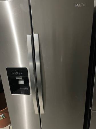 One year old, 24.6 CU. Ft . side by side fridge, finger print resistant, stainless finish, works perfectly, no scratches or dents