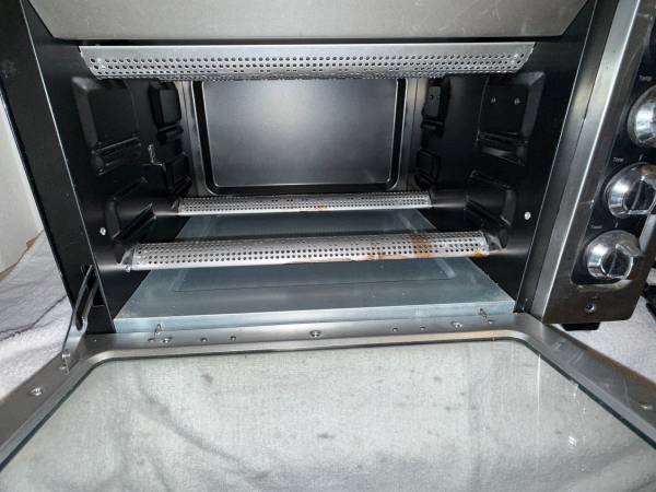 Works fine. We received a bigger one for Christmas. It can toast, bake and warm things up. A few scratches on the top. Cash please.