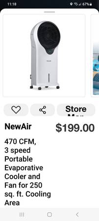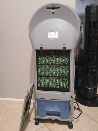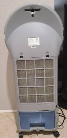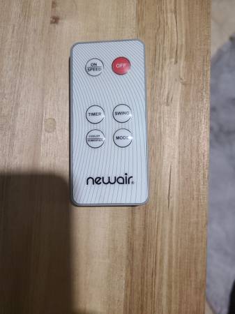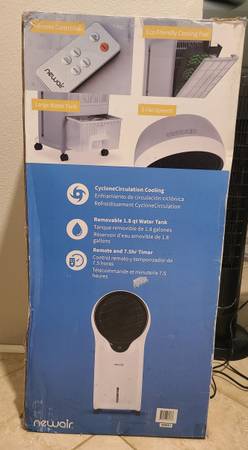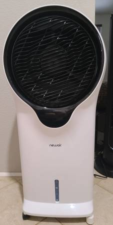 Newair portable evaporative cooler and fan with remote. Used one season. Clean and everything works.