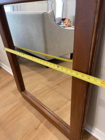 Handmade Wood Framed Hanging Mirror Sizes 30 in. W x 36 in. H Rectangular Framed Wall . No cracks or damage. Cash payment only no less offers