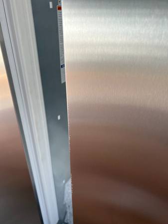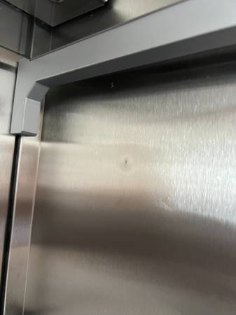 REDUCED,,,Floor model damaged in delivery, runs perfectly but appears to have tipped over in warehouse, front stainless panel is bent and has several interior dings due to the shelves dislocating. Replace the exterior skin and it will look like new on the outside. see pics of the dings, contact me with any questions. Over 8K as a panel ready new unit.