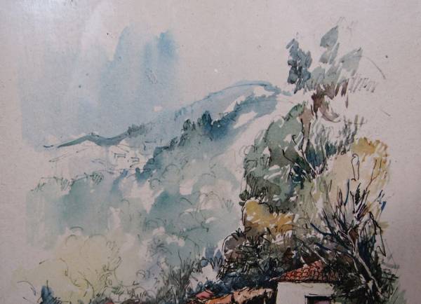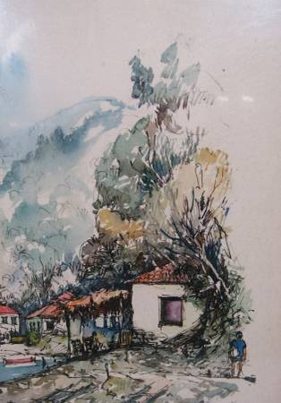 Charming Village Scene Watercolor by Aghi Ioannis & Jan Verhuls
