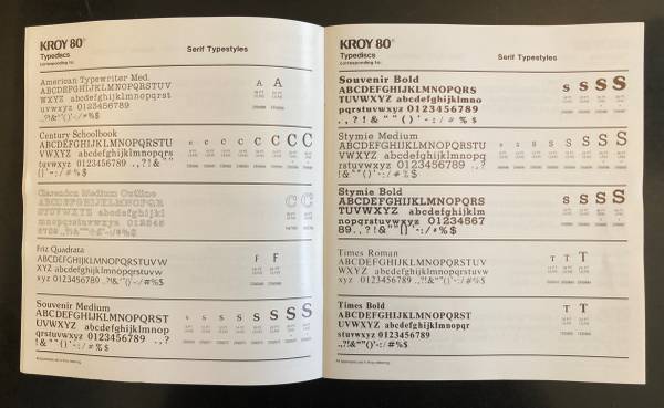 Sale includes the main KROY 80 unit, 10 KROY font disks, 4 letter tape cartridges and operating instructions.
