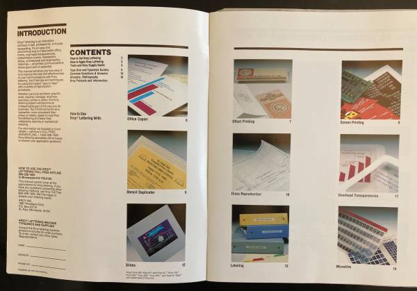 Idea for use to recreate hand-set vintage designs and artwork with a finished look that is more convenient than handlettering and faster than calligraphy, stencils or mechanical lettering. Can also be used on cards, office forms, overhead transparencies, presentation covers, newsletters, slides, architectural and engineering drawings.