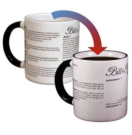 * "The mug depicts the Bill of Rights, one of the most revered and essential documents of our nation."