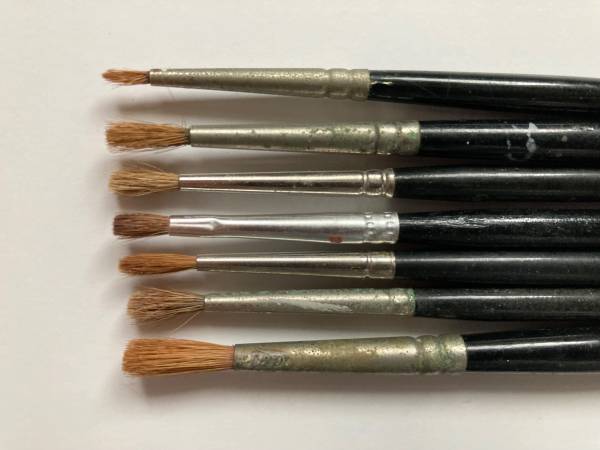 Collection of 23 vintage artist paintbrushes, in assorted shapes and sizes. All have sable hair bristles and are in good condition. Offered as a set only.