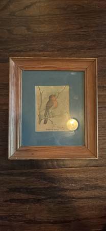 "Robin's Song" is an original acrylic painting on paper, featuring a realistic depiction of nature and birds. The small-sized artwork is framed and captures the essence of the theme with intricate details and vibrant colors. This painting would make a beautiful addition to any art collection, showcasing the beauty and artistry of the natural world through the skilled hands of the artist.