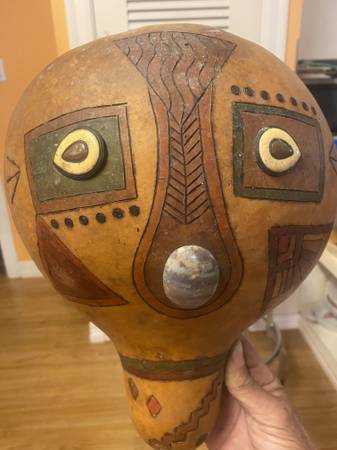 Tiki face made from a gourd 1 small crack at top Needs a Lille “ hair “ $10 cash South Austin