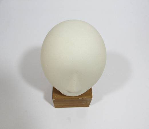 Unique Cycladic Head Sculpture: Modernist Bisque Ceramic on Wooden Base MCM