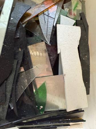 I have 8 boxes of scrap glass. Not fusing glass. These are small pieces and would be good for wind chimes Xmas ornaments or mosaics. Cash only must pick up.