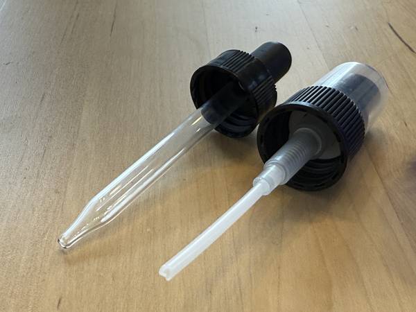 The lot consists of 77 bottles, 37 droppers, and 37 spray nozzles.