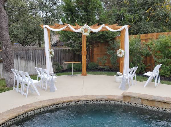 We used this on the arbor for a wedding Picture near the pool), and along the aisle. It was cut for those uses, so the 50 yard is not continuous, but there are few large, long sections that are perfect for draping!