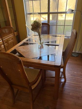 Antique kitchen/dining room set Glass Table 6 chairs and China Cabinet. $ 2000.