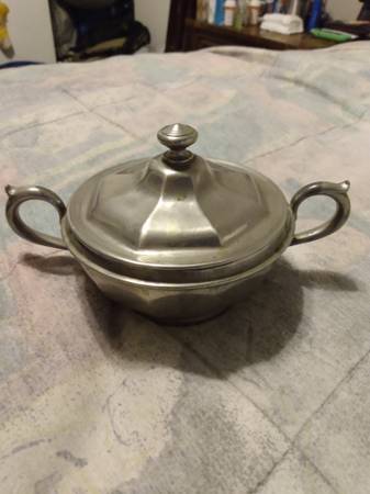 Holiday etched protected silver plate candle/insence holder new and never used. Sugar: MBMeans best 691 Manning Bowman &Co Creamer: Universal Landers Frary Clark Silver plated footed butter dish...