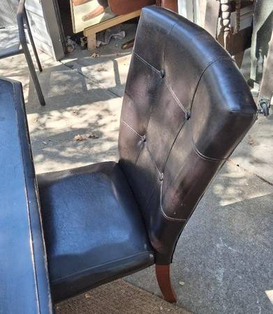 Starter - Trestle Farm Solid Wood Dining Table with Four (4) Leather like Chairs Starter Table with Chairs.. Table has Black finish and has been distressed .. Extremely sturdy and solid Wood.. No...