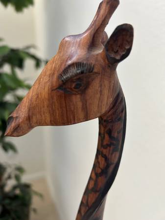 African Art Giraffe Wood Carving with gorgeous eyes-a rare find -...
