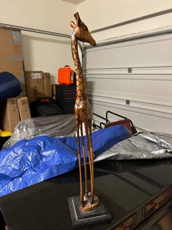 African Art Zimbabwe GIRAFFE WOOD CARVING A rare find and in perfect condition as he been stored since 2005 so elegant and perfect condition. No flaws Stand 29.5 inches tall and look at the...