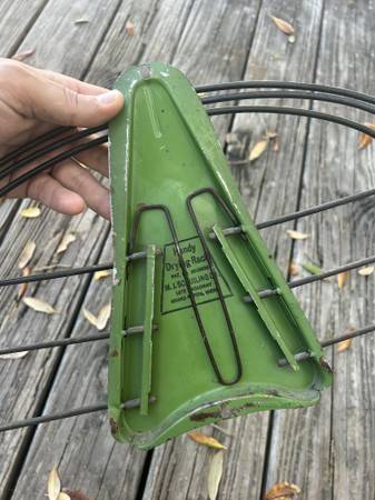 As practical as it is classic this vintage 1940s dish towel rack is the perfect fit for your retro kitchen. Awesome green with 3 movable racks, this can hang on the wall flat, you pull the wire racks down for easy drying. You can move all 3 racks or one at a time. There is a hole at the top and bottom for secure hanging. This dish towel rack is a classic vintage piece.
