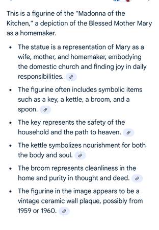 The statue is a representation of Mary as a wife, mother, and homemaker, embodying the church and finding joy in daily responsibilities.