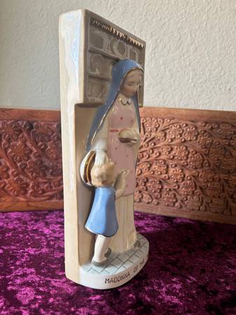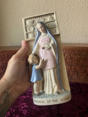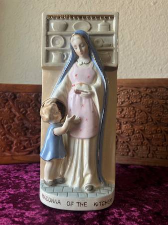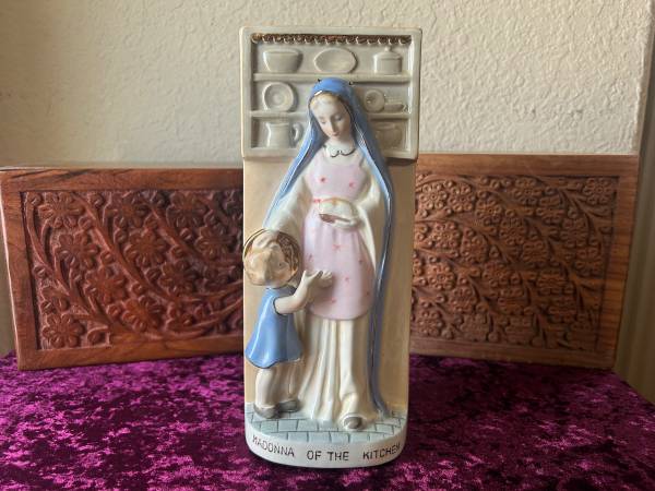 For sale is a stunning religious piece from the Mid Century, 1957 to be exact. It has no chips or cracks, bright crisp colors. “Madonna of the Kitchen”