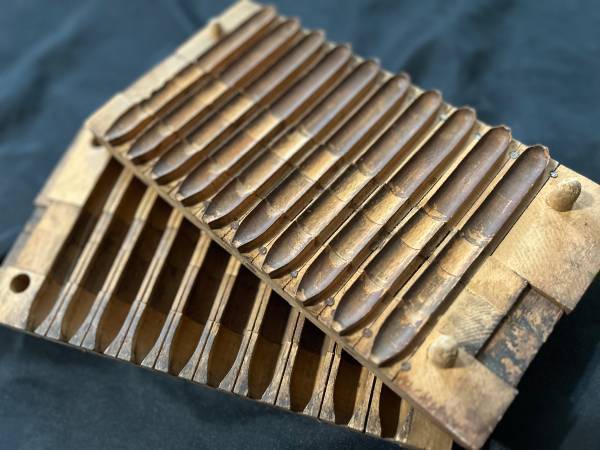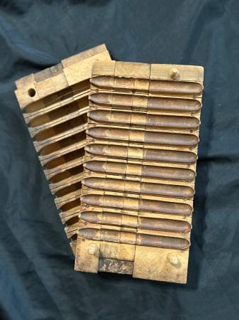 For sale is an Antique wooden Cigar mold for 10 cigars. In great shape. A awesome piece for a smoking room, mancave, bar, lounge, or? A very cool piece, you could hang or display the 2 pieces individually.