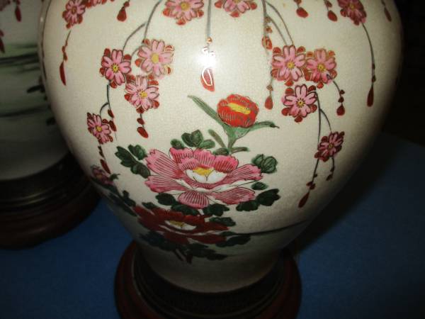 2 KYO (KYOTO) SATSUMA WARE POTTERY LAMPS WITH WOOD BASES - $280 (LLANO)