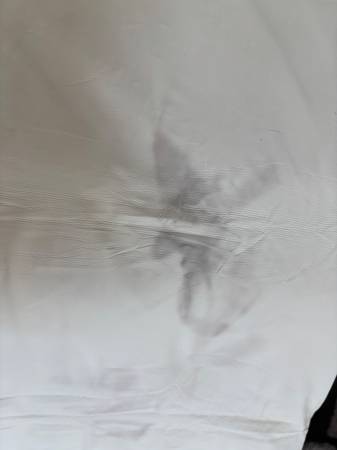Baby Bjorn travel crib in black. Super light weight and compact! Looks like new with the exception of a small discoloration on mattress (pictured). This would be covered by a crib sheet when in use....