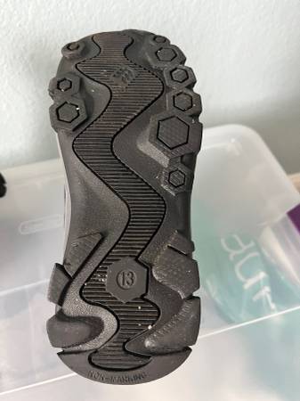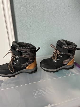 Used for 2 weeks on a trip to Colorado, size Youth 13 will fit 5-8 year old kid (foot length 7 5/8 inches)
