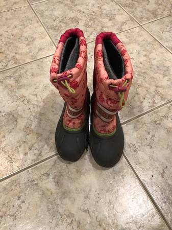 Sorel snow boots. Size 3. Pink and black. Pickup only. Please respond with a phone number.