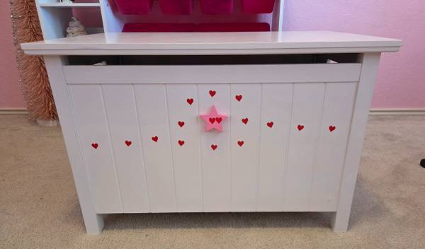 White toy chest. Good condition. Daughter has grown out of it. Needs to go because its taking up room. Asking price $120 or better offer. Please text, email or call if interested.
