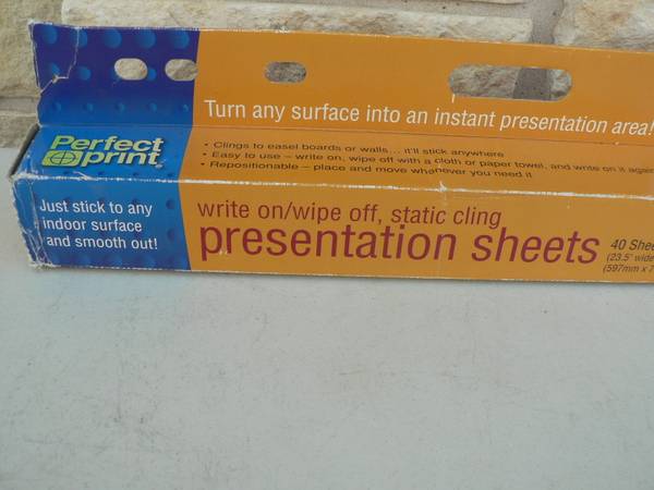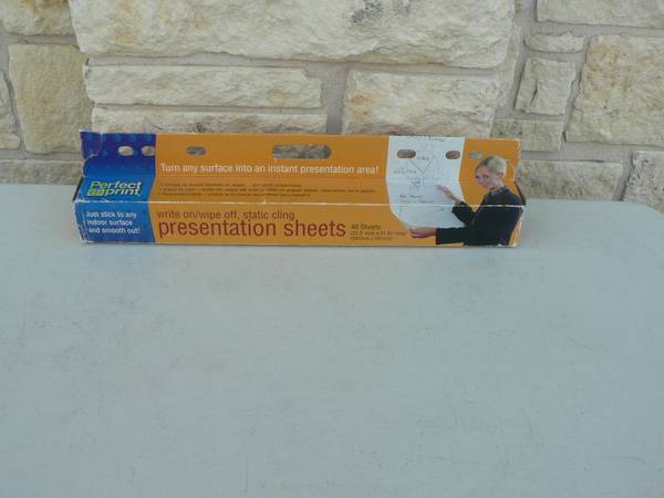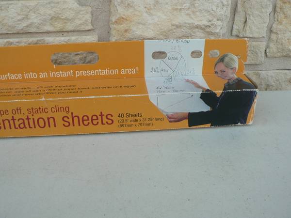 turn any wall or flat surface into a whiteboard that you can take with you! They cling to almost any flat surface without using tape, glue, or thumbtacks. Simply pull a sheet from the dispenser, place it on the wall, smooth it out, and begin! To reposition, just lift the sheet from the surface, move it, and smooth out again. For larger maps or presentations, use as many sheets as you need.