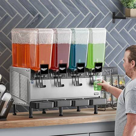 Fountain spray circulation is great for fruit punch, energy drinks, and other non-foaming beverages