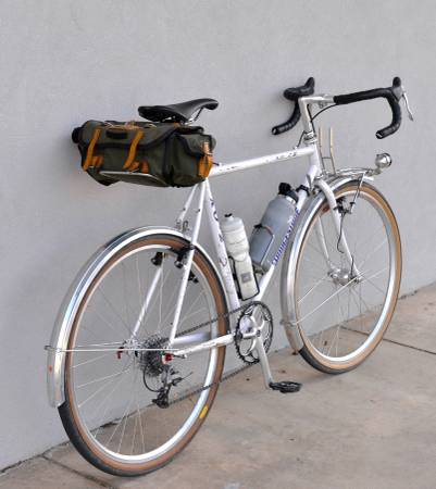 VelocityA23 650b wheelset. DT Swiss 180 rear hub/ Schmidt Son Delux wide Dyno Hub in front, wired to Edelux headlamp.