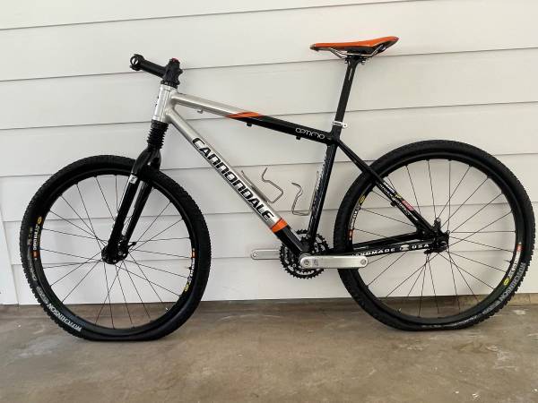 This is Cannondale’s legendary hardtail cross-country race bike, built to professional specs and still an absolute classic. It’s in good overall condition with normal cosmetic wear from use. This is not a complete bike, please review list of specification for what is and is not included.