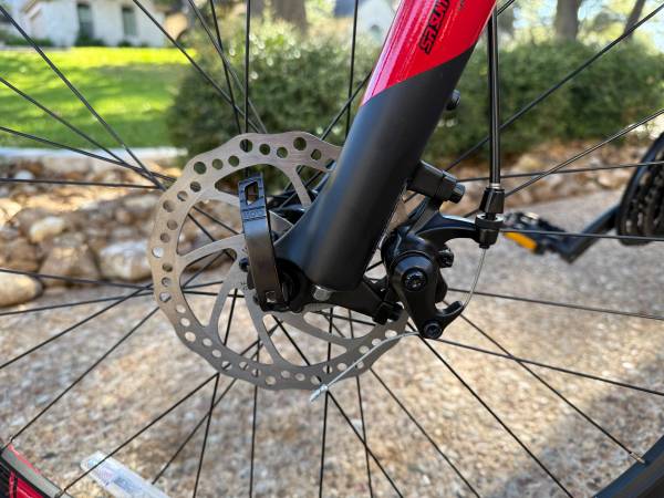 Features: 24-speed Shimano EZ Fire triggers for simple up and down shifting at the press of a button; mechanical disc brakes to ensure reliable stopping power; quick-release tire hubs for straightforward and efficient tire repairs; front-end shocks to provide a smooth ride over varied terrain; aluminum frames combined with alloy mechanisms offer a strong yet lightweight build.