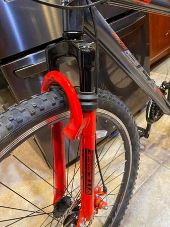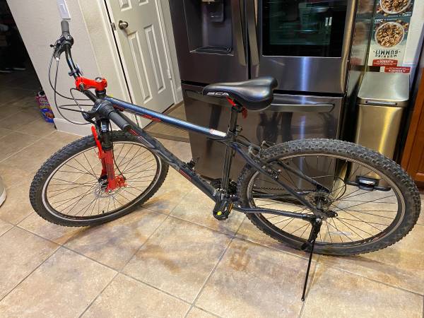Mountain bicycle with 29" tires like new. • Aluminum Frame with Steel Fork • Front Suspension • Front Disc Brake with Rear V-Brake • Padded MTB Style Saddle • 21 Speed Drivetrain with Twist Shifters...